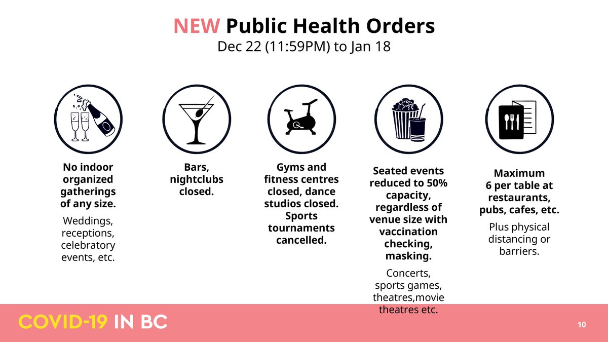 2021年12月21日(火)、BC州政府は、緊急入院患者の増加やCOVID-19(オミクロン)患者の増加により、医療制度に過度の影響を与える可能性があるため、追加対策を実施することを発表しました。